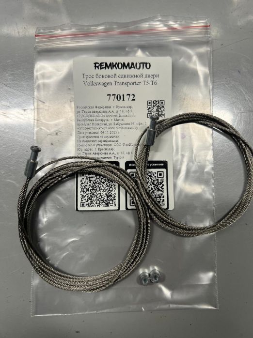 Комплект тросов боковой сдвижной двери VW T5/T6 Caravella 770172.