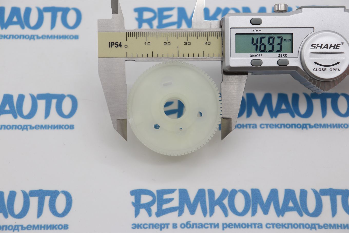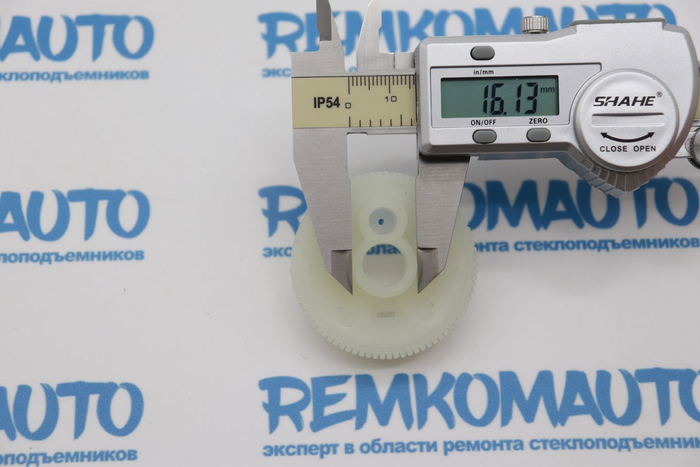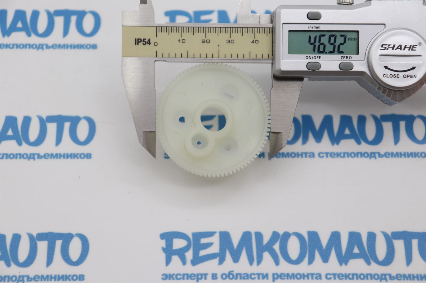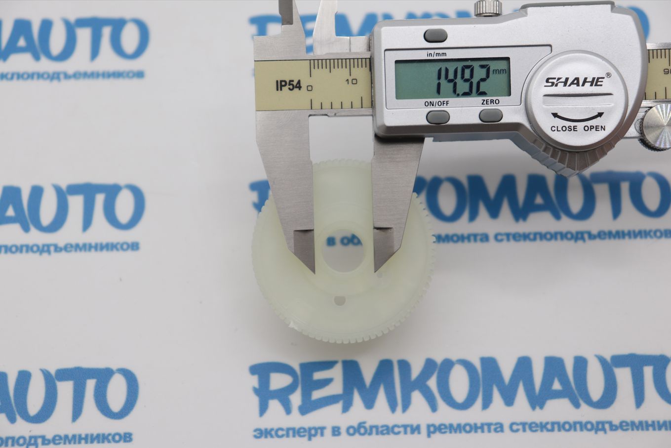 Пластикивая зубчатая шестерня с металлическим валом. Применяется в приводе люка крыши автомобиля.