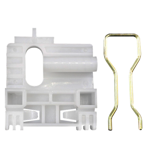 В комплекте одна пластиковая каретка и одна металлическая скоба к ней.