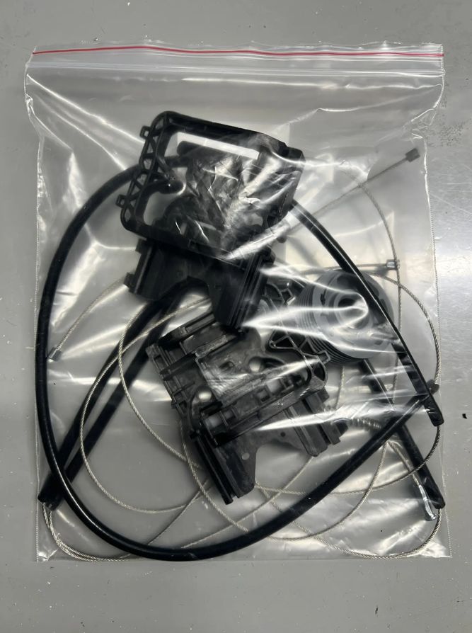 В комплекте 3 троса в оплётках, ролик (катушка) стеклоподъёмника и два направляющих держателя (каретки) стеклоподъёмника.