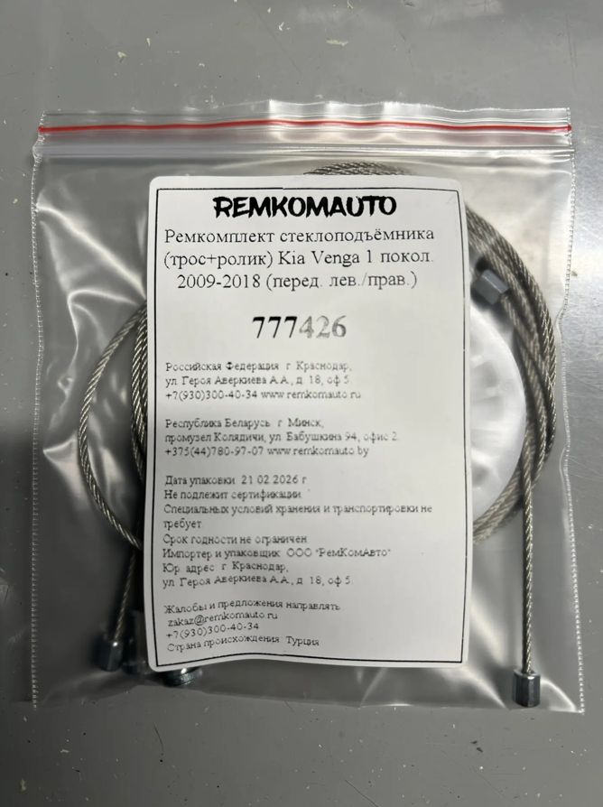 Ремкомплект ст-ка (трос+ролик) Kia Venga 1 покол. 2009-2018 (перед. лев./прав.) 777426