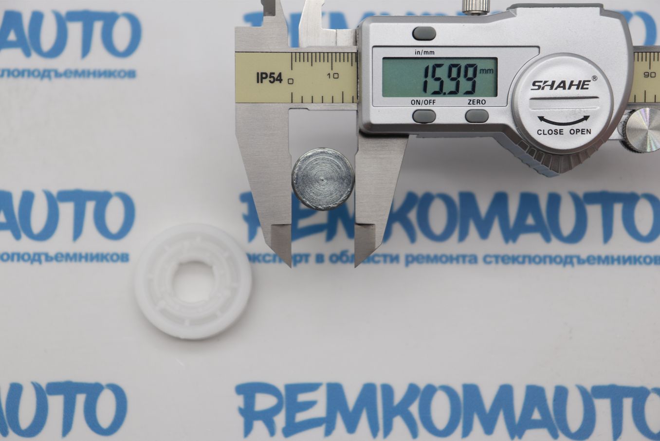 Справочно: Обводной ролик стеклоподъёмника предназначен для направления движения троса стеклоподъёмника к направляющим держателям стеклоподъёмника (кареткам стеклоподъемника). Круглой формы с различными диаметрами, крепится к рельсе стеклоподъемника методом опрессовки клепки обводного ролика. В зависимости от модификации комплектуется клепкой ролика и держателем обводного ролика стеклоподъемника, либо не комплектуется. Применяется для ремонта стеклоподъемников передних и задних дверей автомобилей. Устанавливается в верхней или нижней частях рельсы стеклоподъемника. Подлежит замене при появлении трещин, сколов, неравномерного износа, движения «восьмеркой».