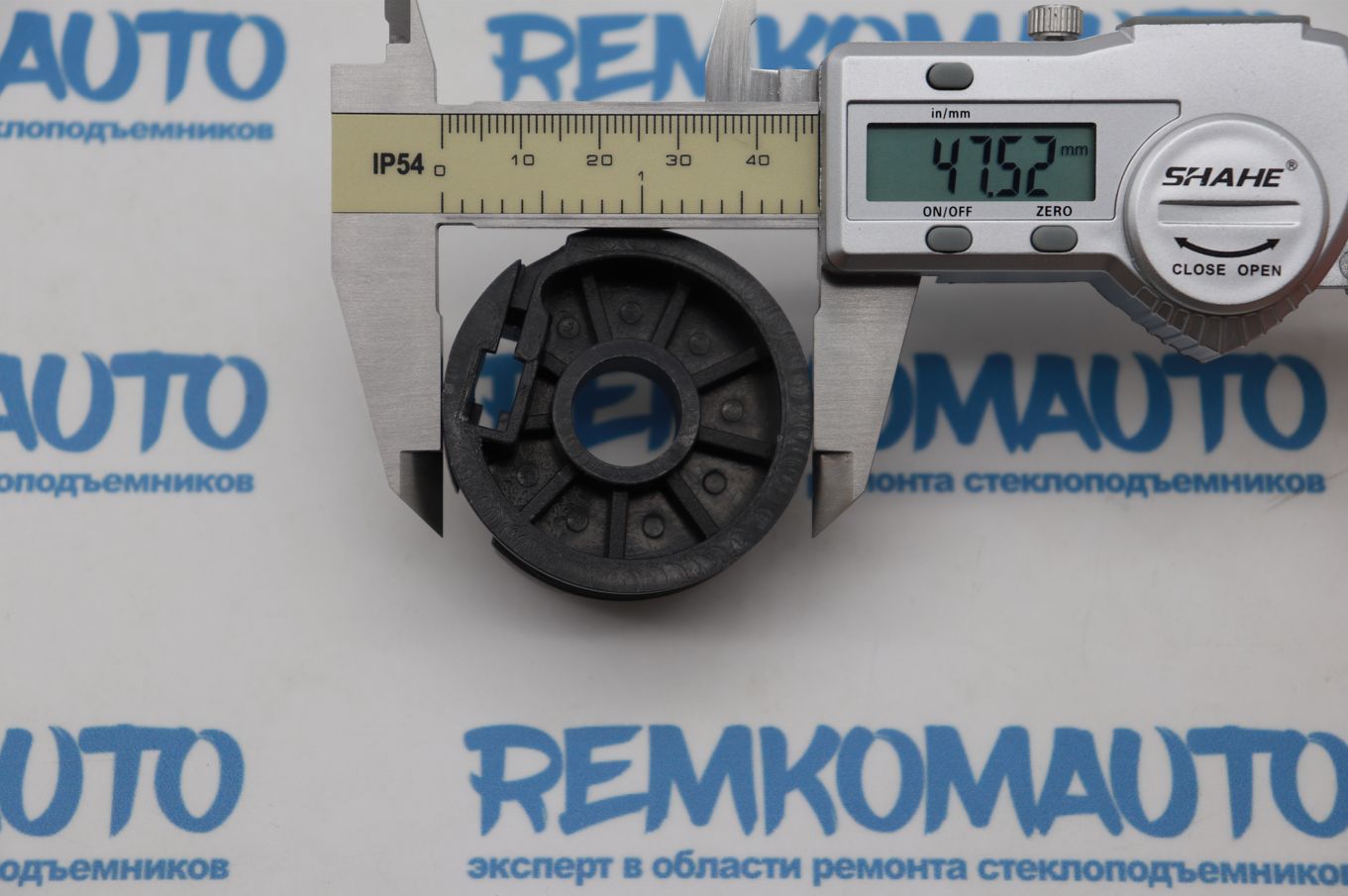 Справочно: Круглый, пластиковый с винтовыми продольными выемками для намотки тросов стеклоподъёмника. Располагается в держателе (крышке) ролика стеклоподъемника. В зависимости от вида исполнения, имеют различные внутренние и внешние диаметры, различную толщину, различные посадочные шлицевые и количество активных витков. Применяется при ремонте стеклоподъемников автомобилей передних и задних дверей. При сервисном обслуживании стеклоподъемников, рекомендуется замена ролика (катушки) совместно с тросом для значительного увеличения срока эксплуатации стеклоподъемника.