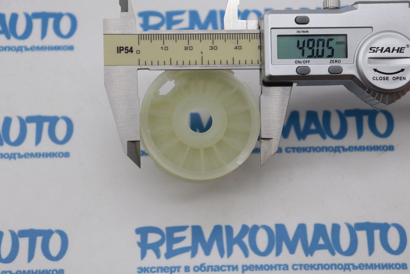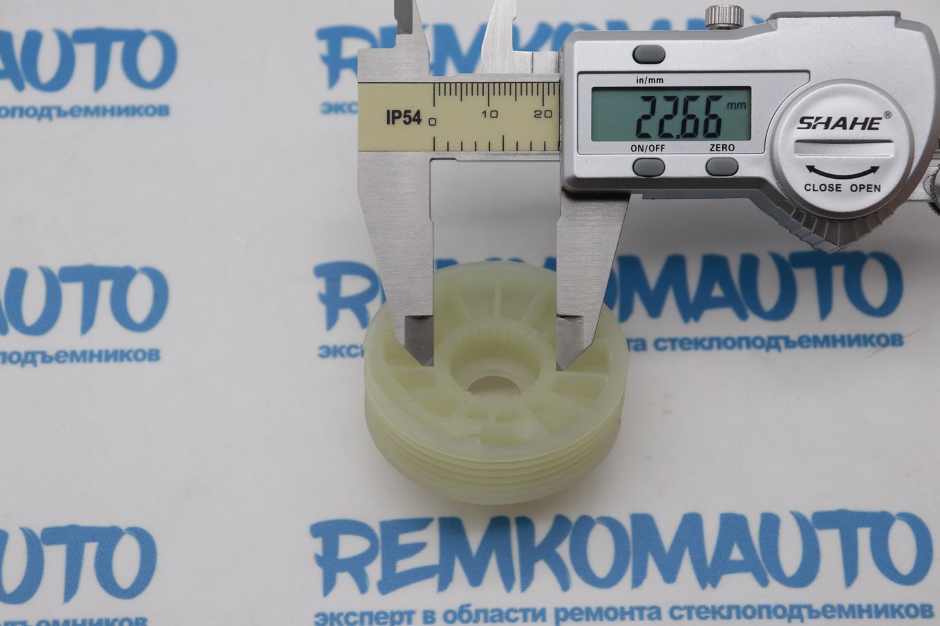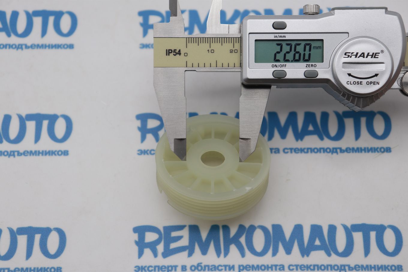 Справочно: Круглый, пластиковый с винтовыми продольными выемками для намотки тросов стеклоподъёмника. Располагается в держателе (крышке) ролика стеклоподъемника. В зависимости от вида исполнения, имеют различные внутренние и внешние диаметры, различную толщину, различные посадочные шлицевые и количество активных витков. Применяется при ремонте стеклоподъемников автомобилей передних и задних дверей. При сервисном обслуживании стеклоподъемников, рекомендуется замена ролика (катушки) совместно с тросом для значительного увеличения срока эксплуатации стеклоподъемника.