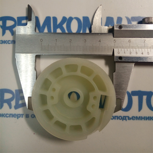 Справочно: Круглый, пластиковый с винтовыми продольными выемками для намотки тросов стеклоподъёмника. Располагается в держателе (крышке) ролика стеклоподъемника. В зависимости от вида исполнения, имеют различные внутренние и внешние диаметры, различную толщину, различные посадочные шлицевые и количество активных витков. Применяется при ремонте стеклоподъемников автомобилей передних и задних дверей. При сервисном обслуживании стеклоподъемников, рекомендуется замена ролика (катушки) совместно с тросом для значительного увеличения срока эксплуатации стеклоподъемника.