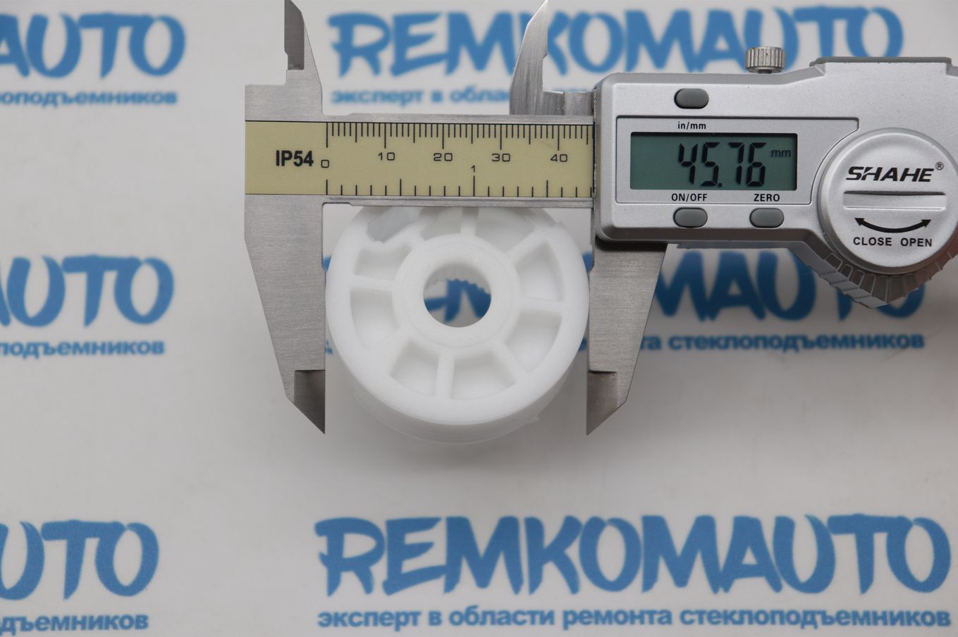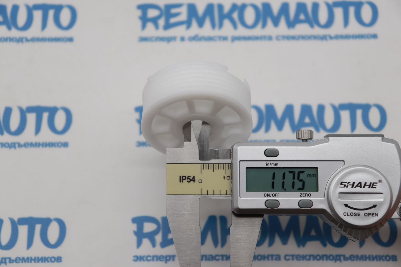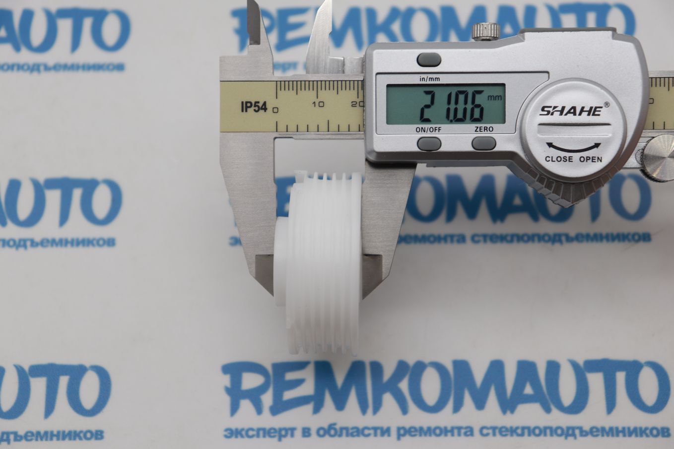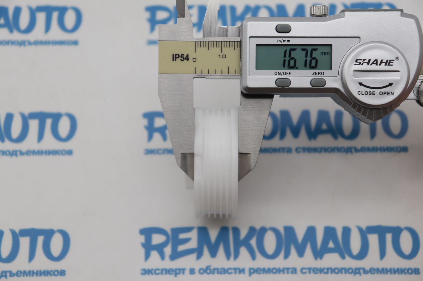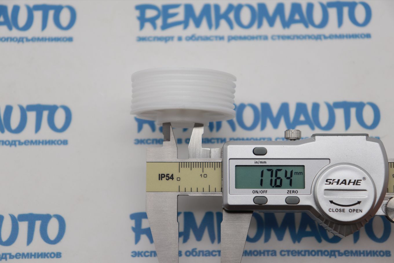 Справочно: Круглый, пластиковый с винтовыми продольными выемками для намотки тросов стеклоподъёмника. Располагается в держателе (крышке) ролика стеклоподъемника. В зависимости от вида исполнения, имеют различные внутренние и внешние диаметры, различную толщину, различные посадочные шлицевые и количество активных витков. Применяется при ремонте стеклоподъемников автомобилей передних и задних дверей. При сервисном обслуживании стеклоподъемников, рекомендуется замена ролика (катушки) совместно с тросом для значительного увеличения срока эксплуатации стеклоподъемника.