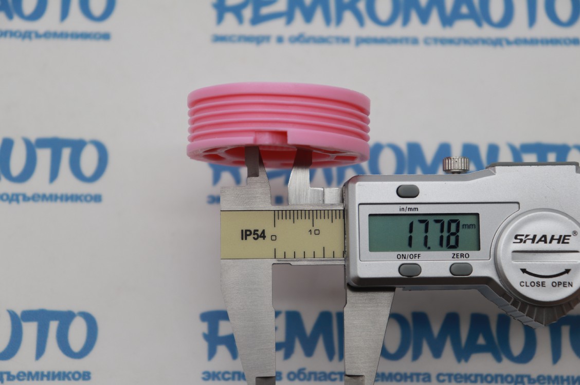 Справочно: Круглый, пластиковый с винтовыми продольными выемками для намотки тросов стеклоподъёмника. Располагается в держателе (крышке) ролика стеклоподъемника. В зависимости от вида исполнения, имеют различные внутренние и внешние диаметры, различную толщину, различные посадочные шлицевые и количество активных витков. Применяется при ремонте стеклоподъемников автомобилей передних и задних дверей. При сервисном обслуживании стеклоподъемников, рекомендуется замена ролика (катушки) совместно с тросом для значительного увеличения срока эксплуатации стеклоподъемника.