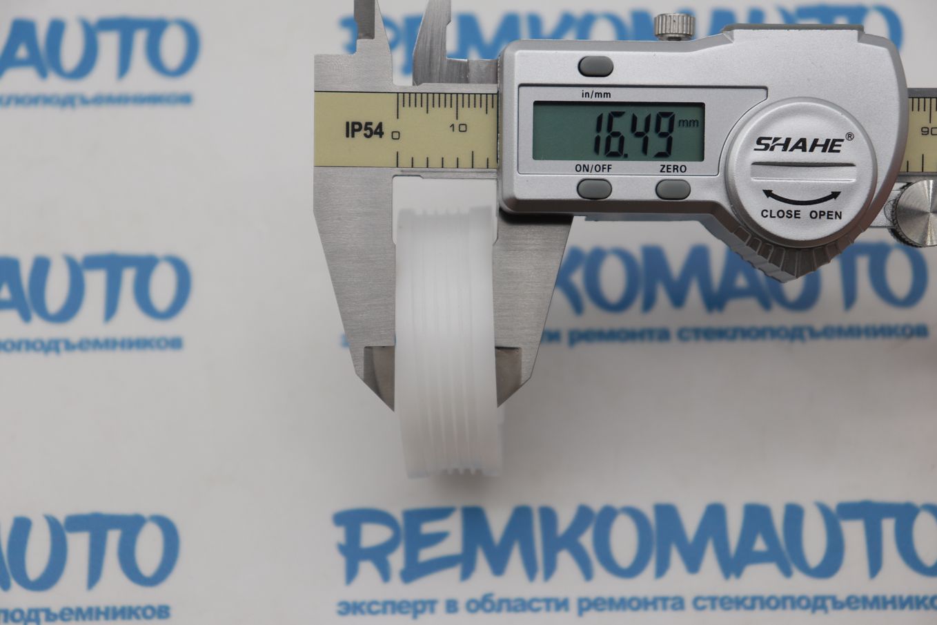 Справочно: Круглый, пластиковый с винтовыми продольными выемками для намотки тросов стеклоподъёмника. Располагается в держателе (крышке) ролика стеклоподъемника. В зависимости от вида исполнения, имеют различные внутренние и внешние диаметры, различную толщину, различные посадочные шлицевые и количество активных витков. Применяется при ремонте стеклоподъемников автомобилей передних и задних дверей. При сервисном обслуживании стеклоподъемников, рекомендуется замена ролика (катушки) совместно с тросом для значительного увеличения срока эксплуатации стеклоподъемника.