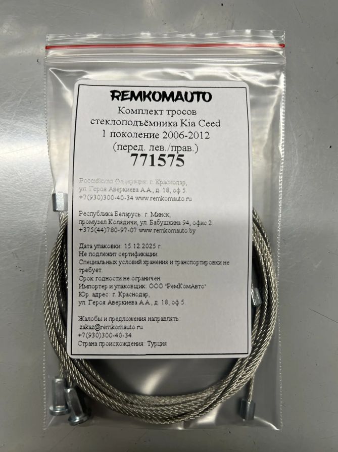 Комплект тросов ст-ка Kia Ceed 1 покол. 2006-2012 (ED) ОЕМ:82470-1H020 (перед.лев/прав) 771575