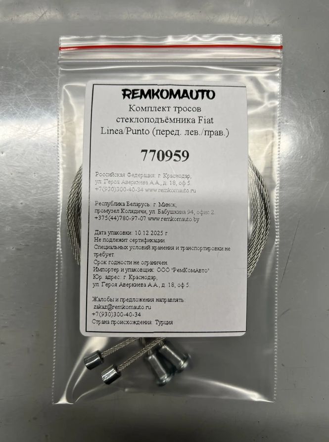 Комплект тросов стеклоподъёмника Fiat Linea/Punto (перед. лев./прав.) 770959.