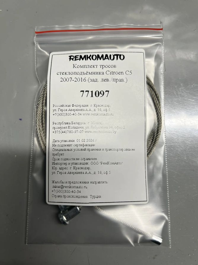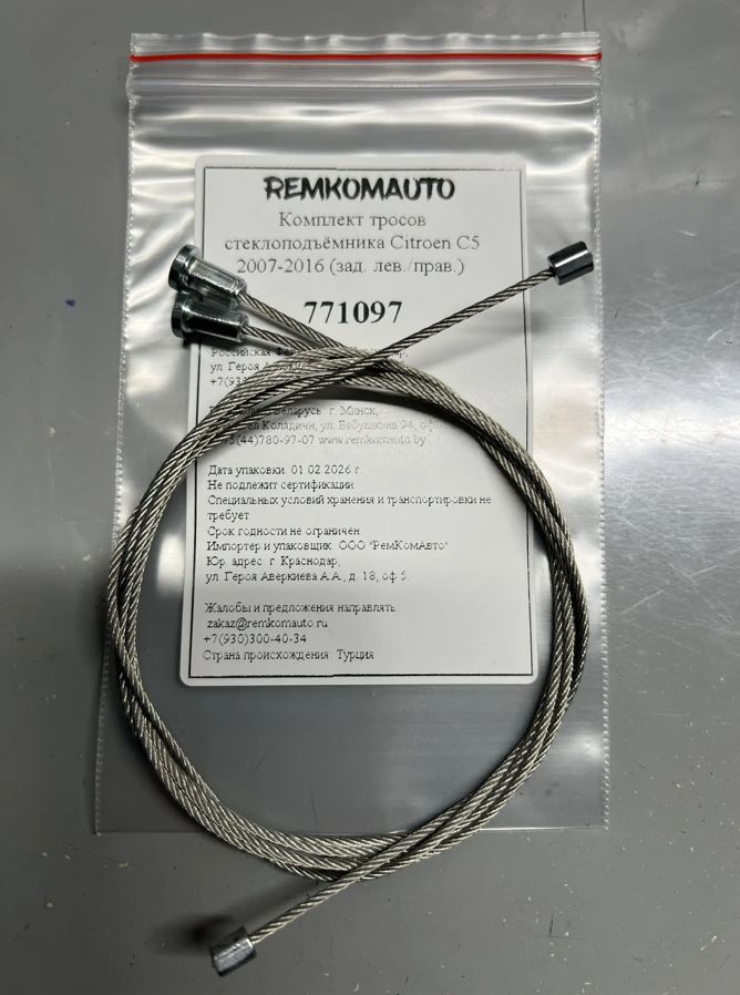 Комплект тросов стеклоподъёмника Citroen C5 2007-2016 (зад. лев./прав.) 771097