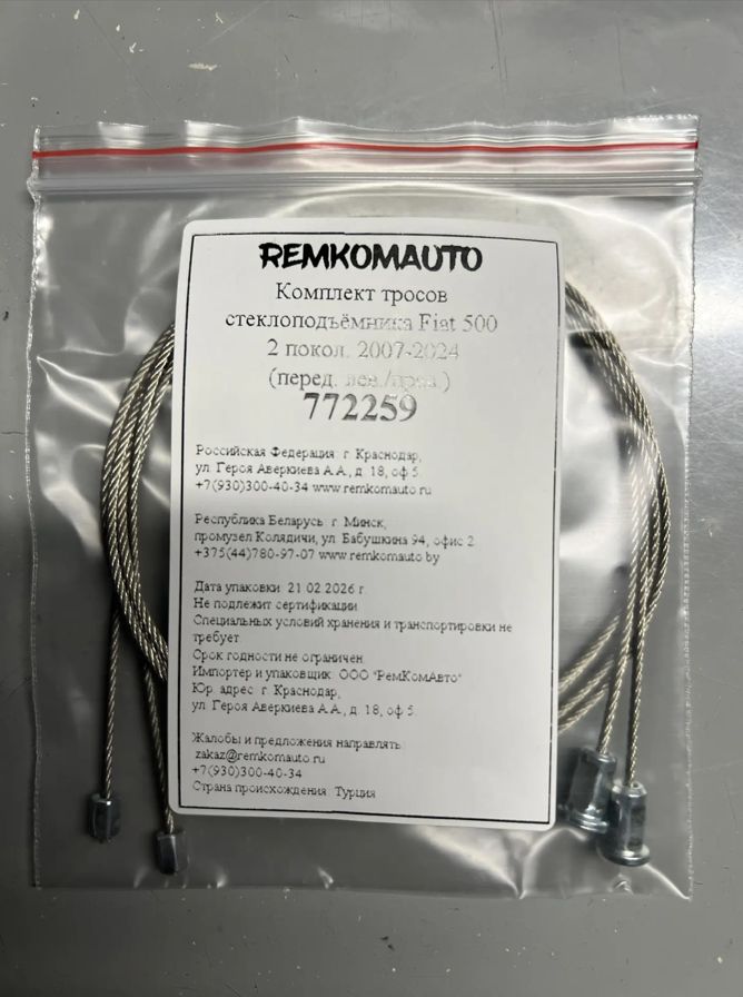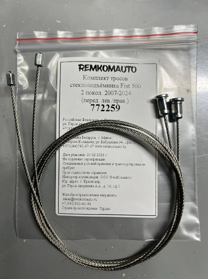 Комплект тросов стеклоподъёмника Fiat 500 2 покол. 2007-2024 (перед. лев./прав.) 772259