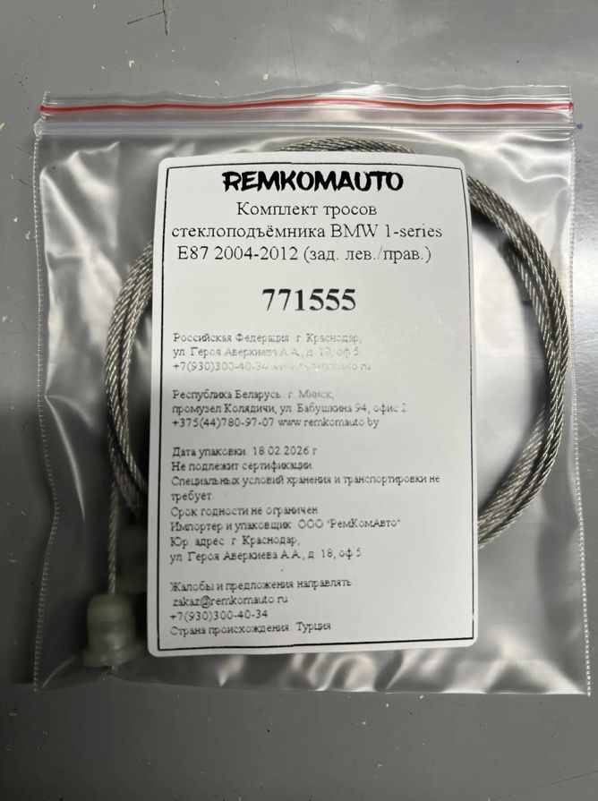 Комплект тросов стеклоподъёмника BMW 1-series E87 2004-2012 (зад. лев./прав.) 771555
