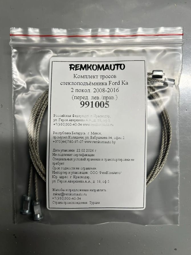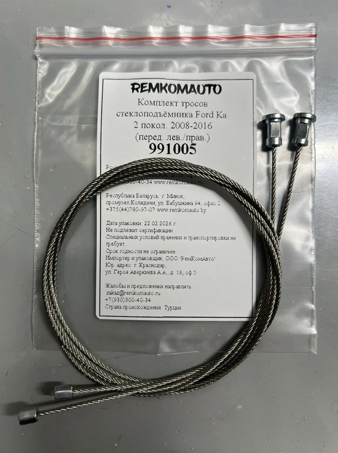 Комплект тросов стеклоподъёмника Ford Ka 2 покол. 2008-2016 (перед. лев./прав.) 991005