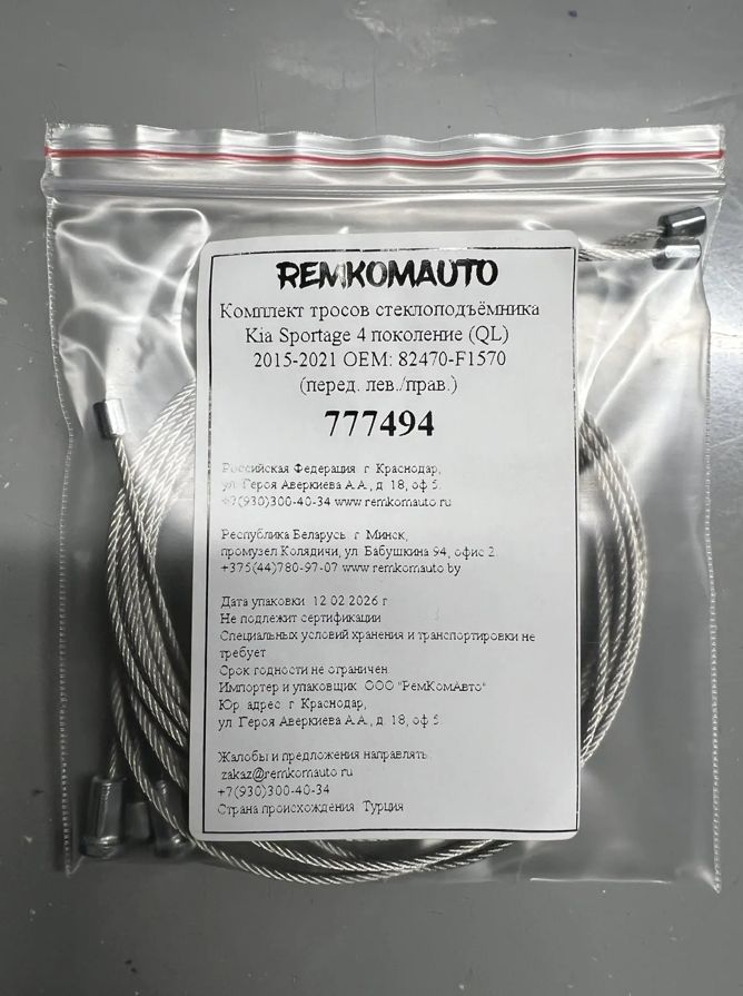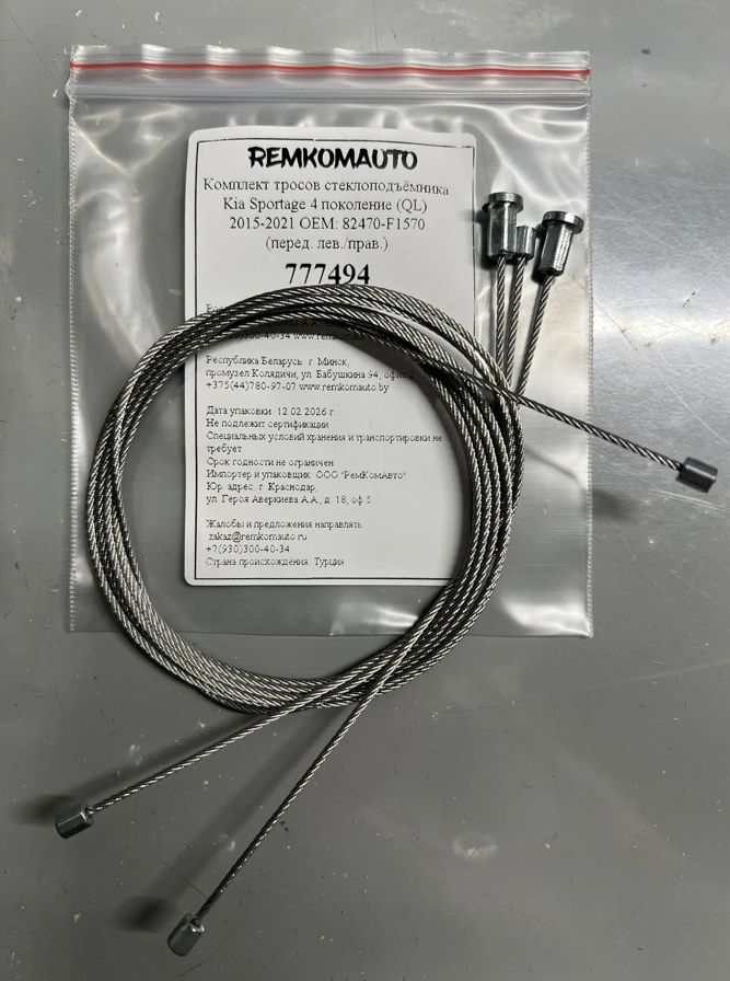 Комплект тросов ст-ка Kia Sportage 4 поколение (QL) 2015-2021 ОЕМ: 82470-F1570 (перед.) 777494