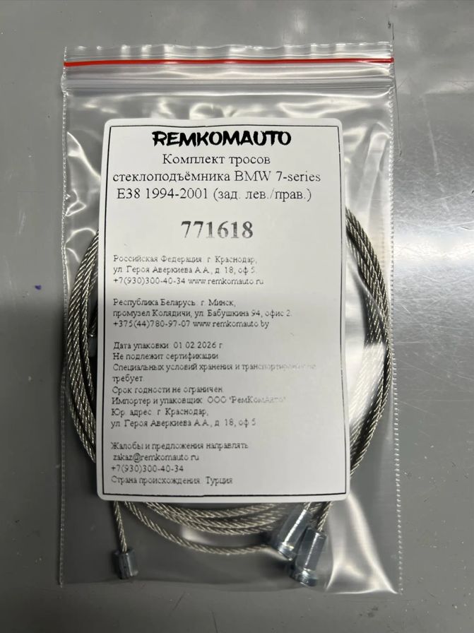 Комплект тросов стеклоподъёмника BMW 7-series E38 1994-2001 (зад. лев./прав.) 771618.