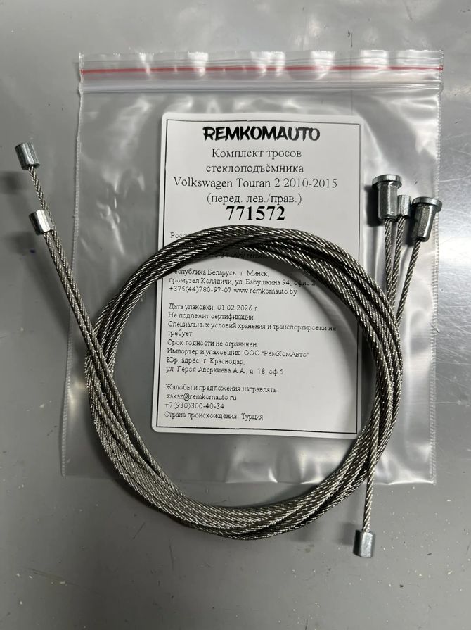 Комплект тросов стеклоподъёмника Volkswagen Touran 2 2010-2015 (перед. лев./прав.) 771572