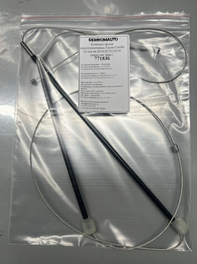 Комплект тросов стеклоподъёмника Toyota Corolla 7,8 пок-ие (Е100,Е110) 92-00 (перед.лев/прав) 771836.