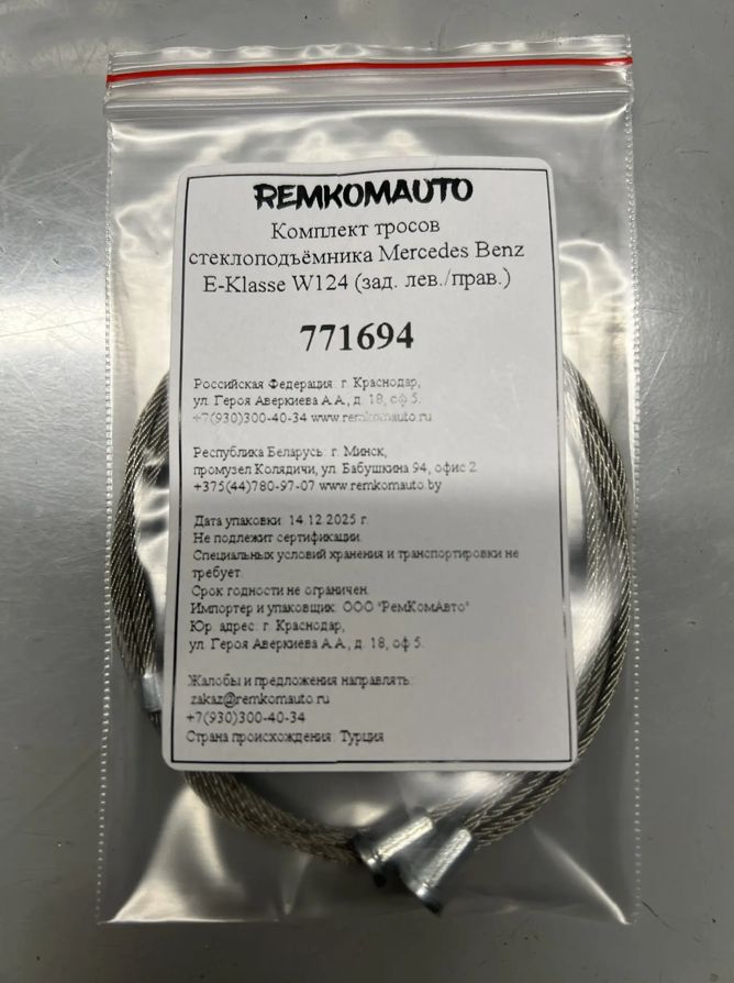 Комплект тросов стеклоподъёмника Mercedes Benz E-Klasse W124 1984-1996 (зад. лев./прав.) 771694.