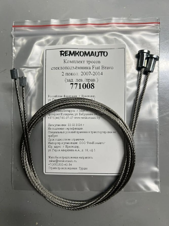 Комплект тросов стеклоподъёмника Fiat Bravo 2 покол. 2007-2014 (зад. лев./прав.) 771008