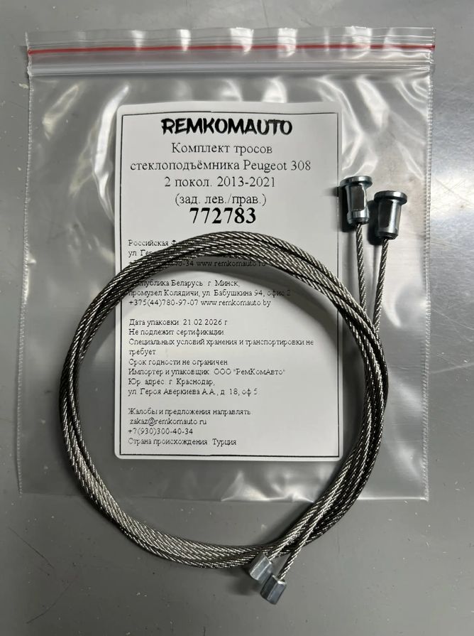 Комплект тросов стеклоподъёмника Peugeot 308 2 покол. 2013-2021 (зад. лев./прав.) 772783