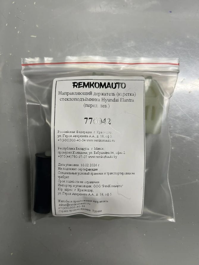 Направляющий держатель (каретка) стеклоподъёмника Hyundai Elantra 2015-2020 (AD) (перед. лев) 776042