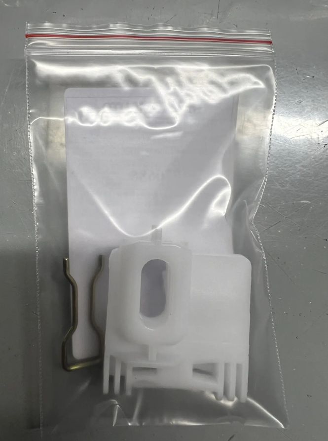 В комплекте одна пластиковая каретка и одна металлическая скоба к ней.