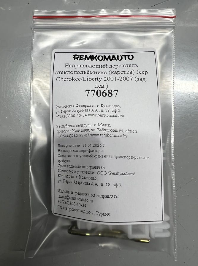 Направляющий держатель стеклоподъёмника (каретка) Jeep Cherokee/Liberty 2001-2007 (зад. лев.) 770687