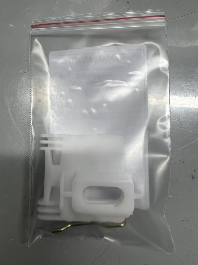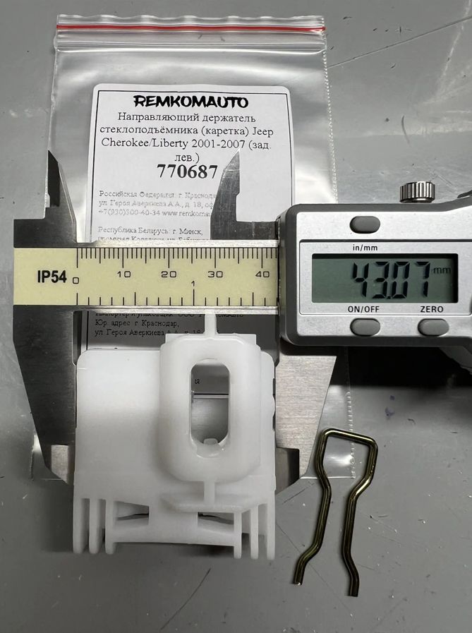 В комплекте одна пластиковая каретка и одна металлическая скоба к ней.