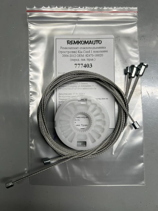 Ремкомплект стеклоподъемника (трос+ролик) Kia Ceed (2006 - 2012) перед. лев./прав. 777403