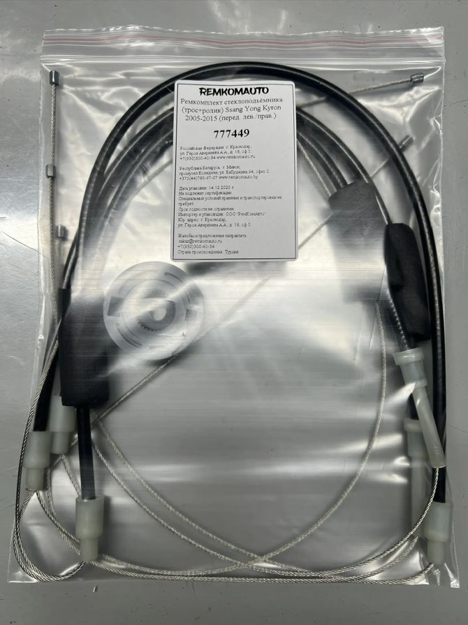 Ремкомплект стеклоподьёмника (трос+ролик) Ssang Yong Kyron 2005-2015 (перед. лев./прав.) 777449.