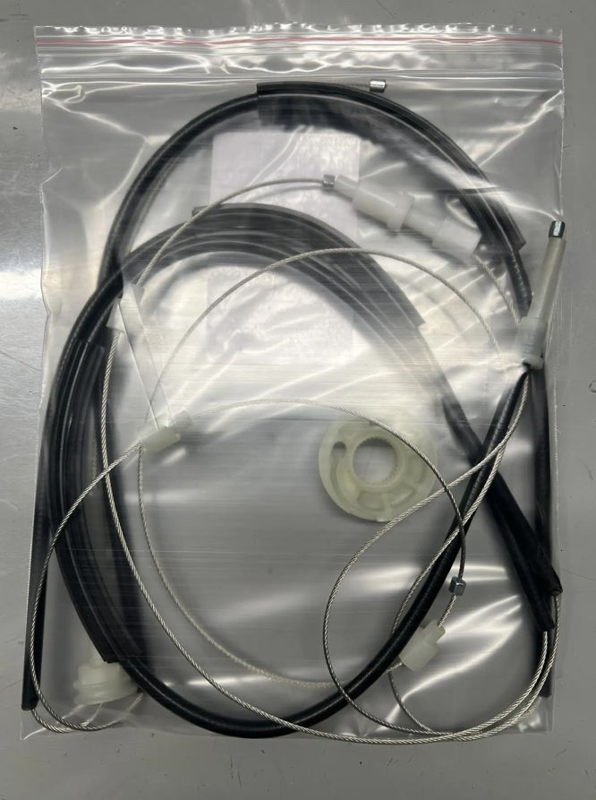 В комплекте 1 длинный трос в оплётках и ролик стеклоподъемника.