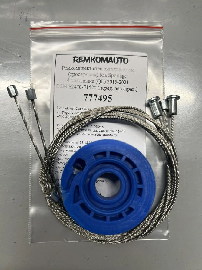 Ремкомплект ст-ка(трос+ролик) Kia Sportage4 (QL) 2015-2021 ОЕМ:82470-F1570; 82470-F1690 перед 777495