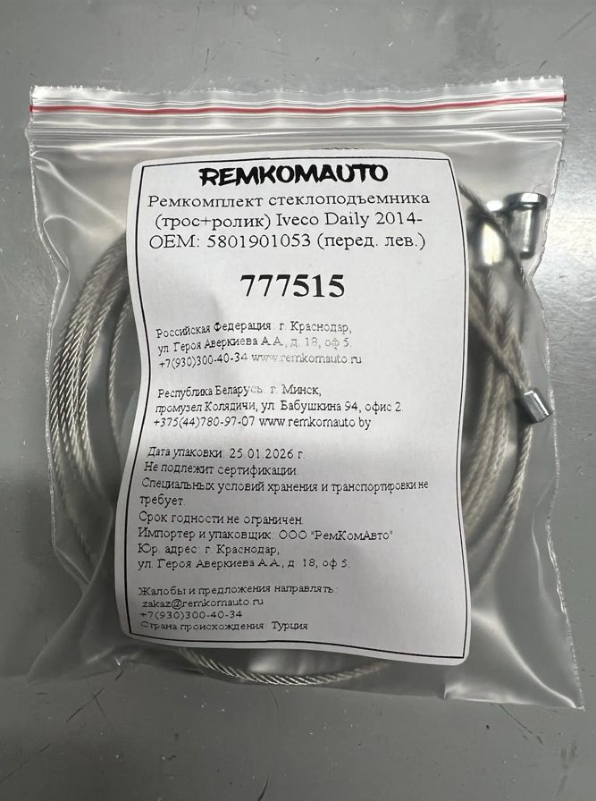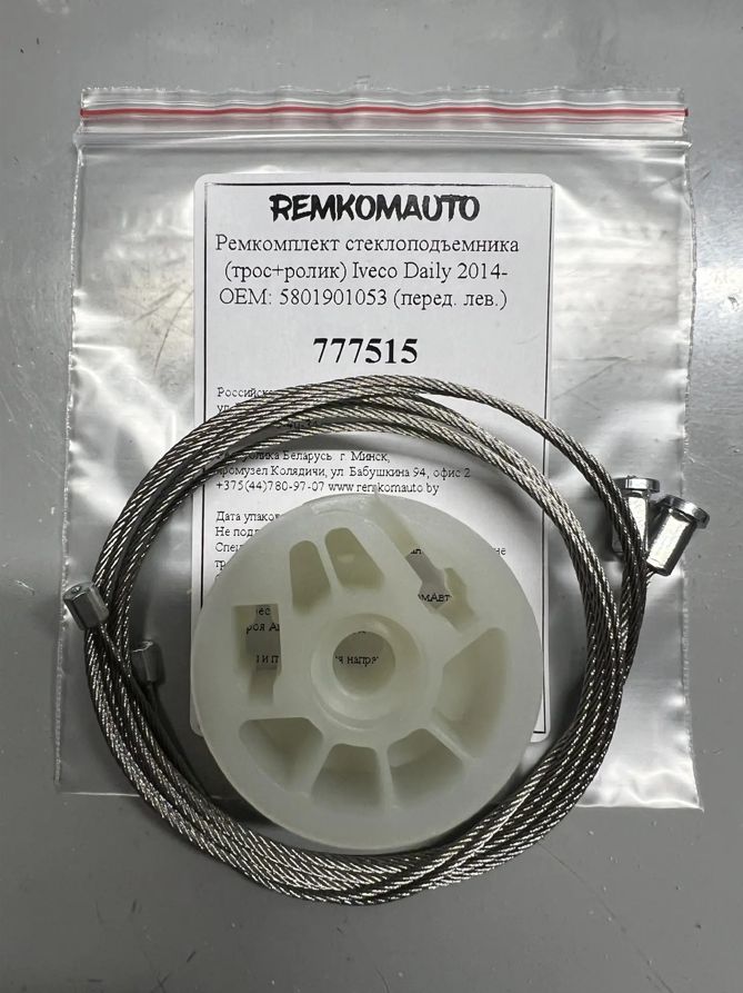 Ремкомплект стеклоподъемника (трос+ролик) Iveco Daily 2014- OEM: 5801901053 (перед. лев.) 777515