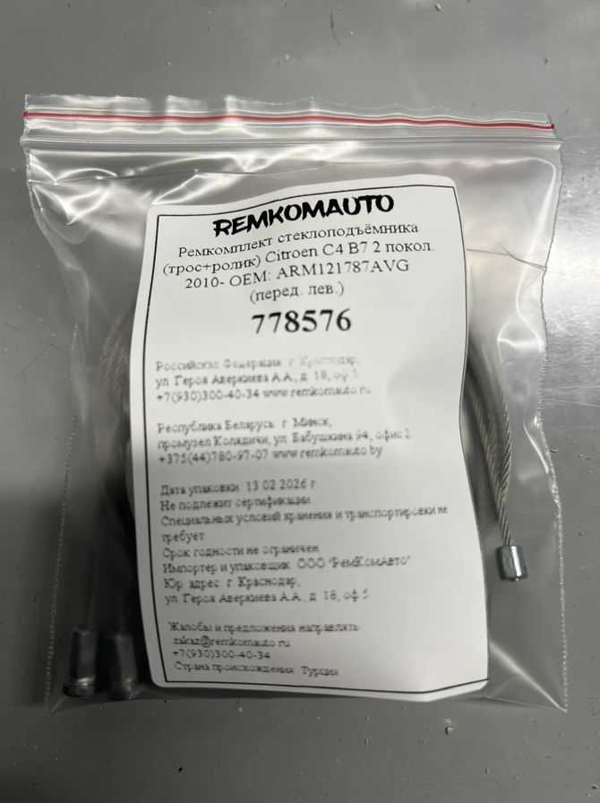 Ремкомплект ст-ка (трос+ролик) Citroen C4 B7 2 покол. 2010- ОЕМ: ARM121787AVG (перед. лев.) 778576