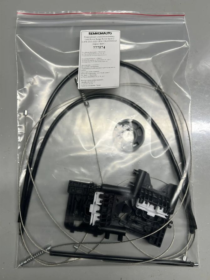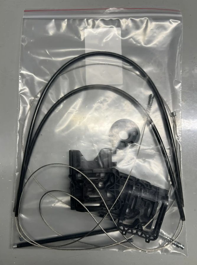 В комплекте 3 троса в оплётках, ролик (катушка) стеклоподъёмника и два направляющих держателя (каретки) стеклоподъёмника.