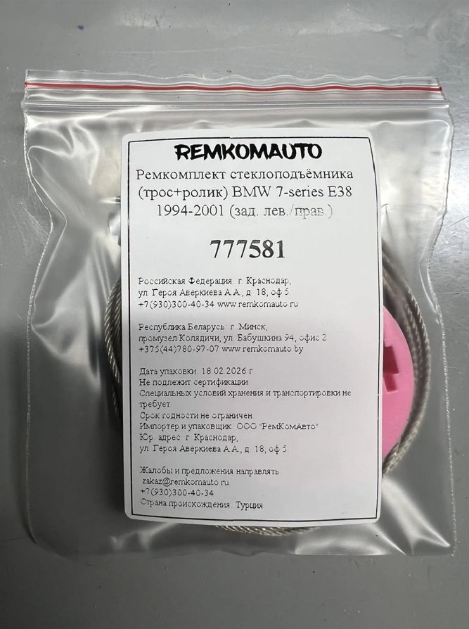 Ремкомплект стеклоподъёмника (трос+ролик) BMW 7-series E38 1994-2001 (зад. лев./прав.) 777581.