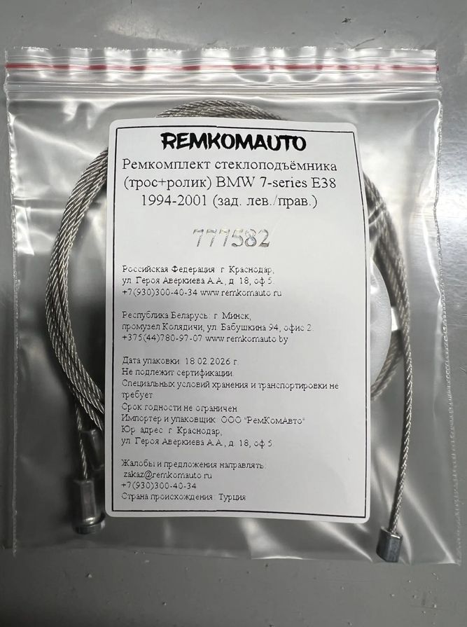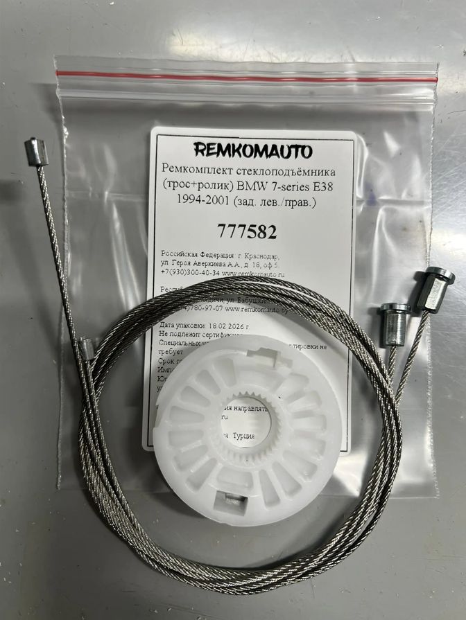 Ремкомплект стеклоподъёмника (трос+ролик) BMW 7-series E38 1994-2001 (зад. лев./прав.) 777582.