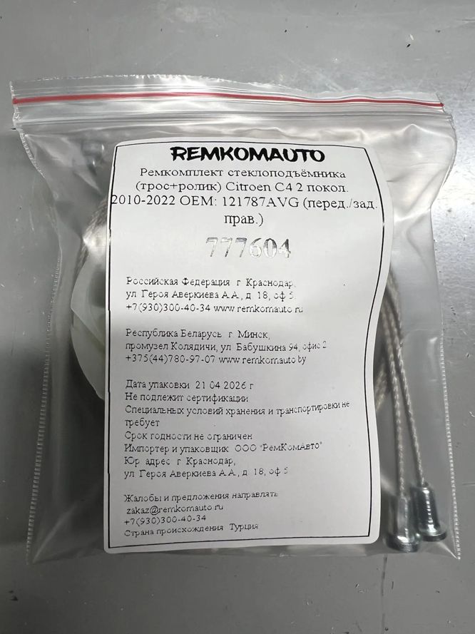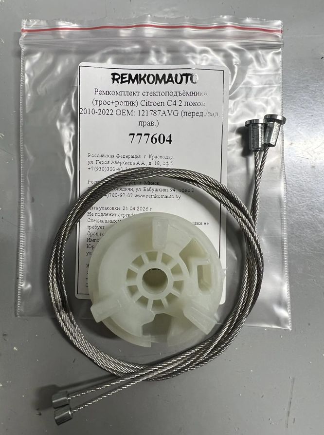 Ремкомплект ст-ка (трос+ролик) Citroen C4 2 покол. 2010-2022 ОЕМ: 121787AVG (перед/зад. прав) 777604