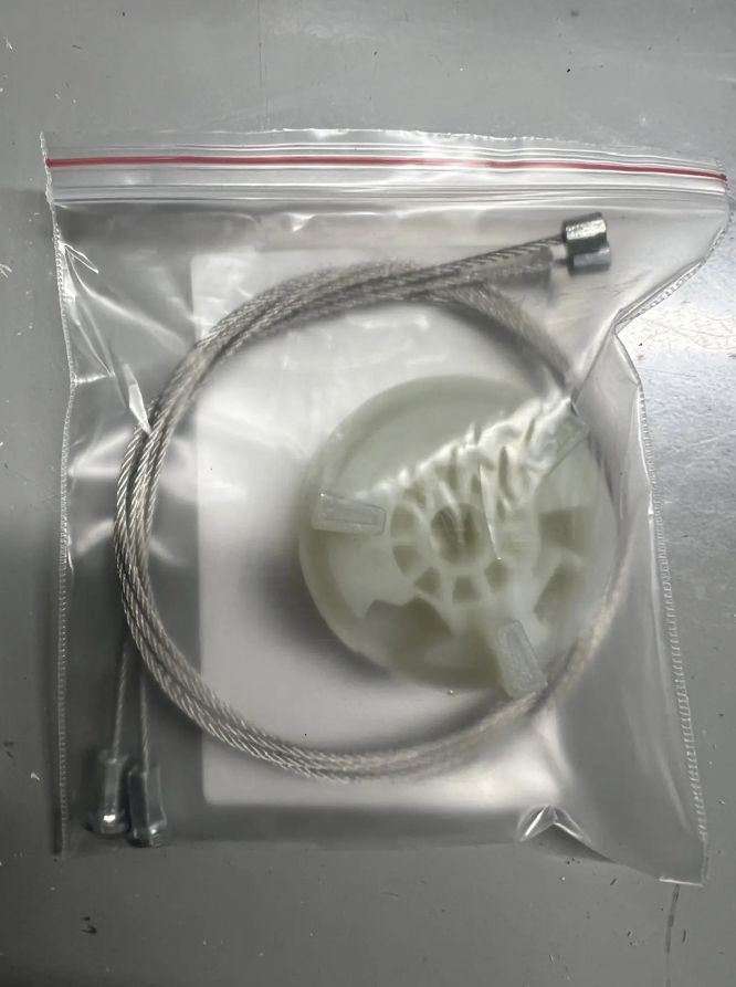 В комплекте 2 троса без оплёток и ролик (катушка) стеклоподъёмника.