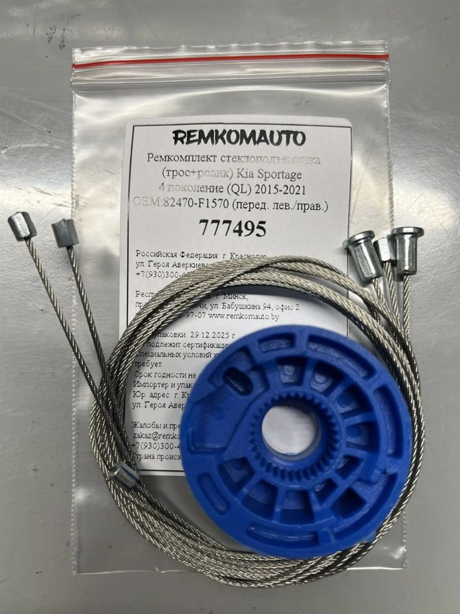 Ремкомплекты стеклоподъемников (трос+ролик)