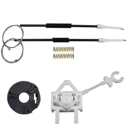 Ремкомплект стеклоподъемника на одну дверь. В комплекте 2 троса в оплётках, ролик стеклоподъемника и направляющий держатель стеклоподъемника.