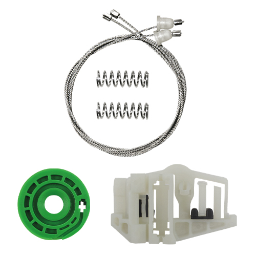 Справочно: Сервисный ремкомплект стеклоподъемника предназначен для ремонта механической части стеклоподъемника, состоящий из комплектующих деталей стеклоподъемника. Обычно, в состав ремкомплекта входят все необходимые запчасти стеклоподъемника, которые имеют свойство изнашиваться при использовании, а именно: комплект тросов стеклоподъемника, ролик (катушка) стеклоподъемника, направляющие держатели (каретки) стеклоподъемника, другие мелкие запчасти для ремонта стеклоподъемника (фиксаторы, держатели стекла и др.). Заменить ремкомплект стеклоподъемника очень легко, следуя инструкциям по установке, расположенным на нашем сайте. Нет необходимости покупать стеклоподъемник - замените изношенные детали самостоятельно.