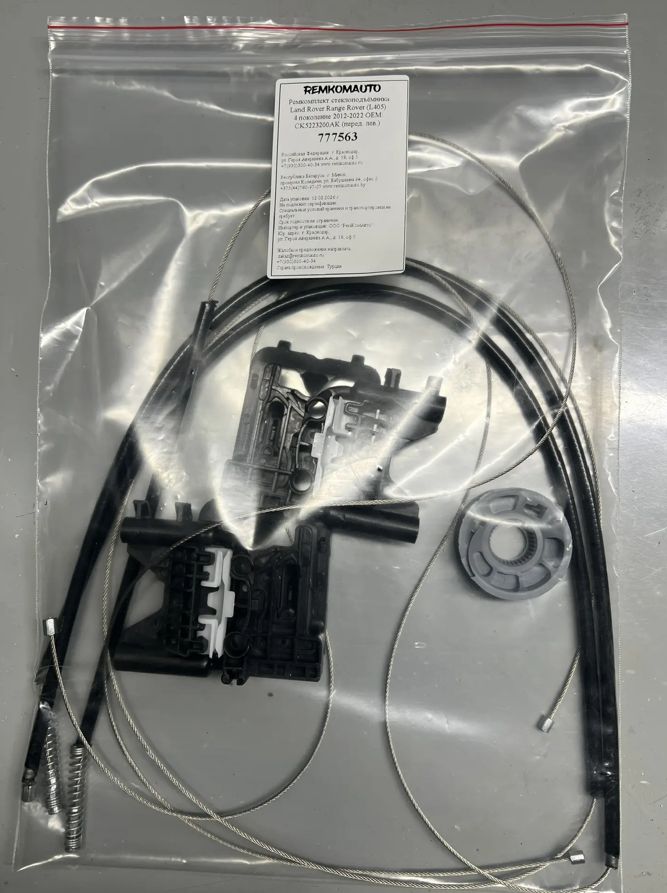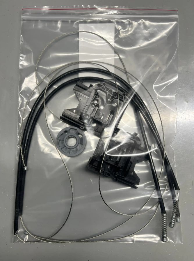 В комплекте 3 троса в оплётках, ролик (катушка) стеклоподъёмника и два направляющих держателя (каретки) стеклоподъёмника.
