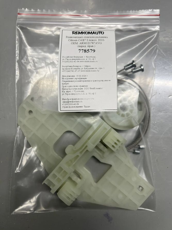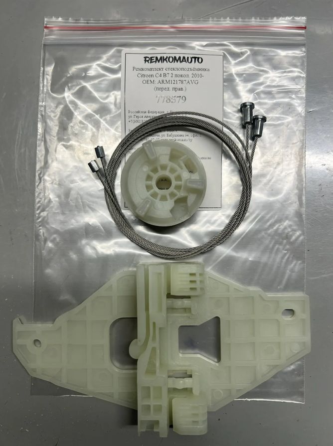 Ремкомплект стеклоподъёмника Citroen C4 B7 2 покол. 2010- ОЕМ: ARM121787AVG (перед. прав.) 778579