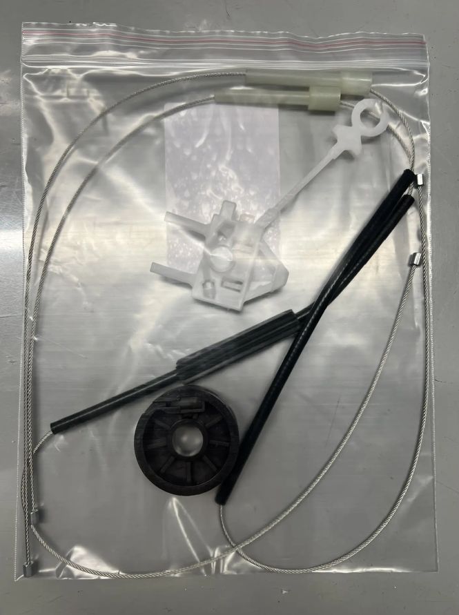 Справочно: Сервисный ремкомплект стеклоподъемника предназначен для ремонта механической части стеклоподъемника, состоящий из комплектующих деталей стеклоподъемника. Обычно, в состав ремкомплекта входят все необходимые запчасти стеклоподъемника, которые имеют свойство изнашиваться при использовании, а именно: комплект тросов стеклоподъемника, ролик (катушка) стеклоподъемника, направляющие держатели (каретки) стеклоподъемника, другие мелкие запчасти для ремонта стеклоподъемника (фиксаторы, держатели стекла и др.). Заменить ремкомплект стеклоподъемника очень легко, следуя инструкциям по установке, расположенным на нашем сайте. Нет необходимости покупать стеклоподъемник - замените изношенные детали самостоятельно.