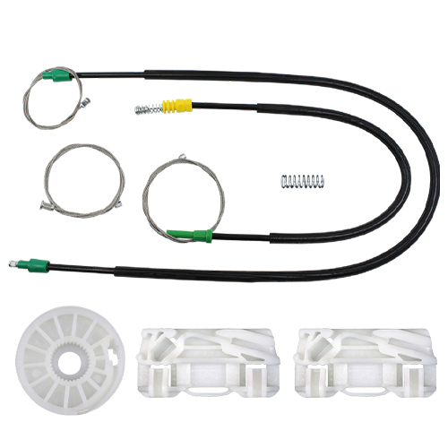 В комплекте 2 троса в оплётках, 1 трос без оплётки, ролик (катушка) стеклоподъёмника и два направляющих держателя (каретки) стеклоподъёмника.
