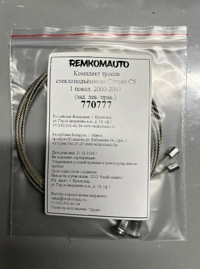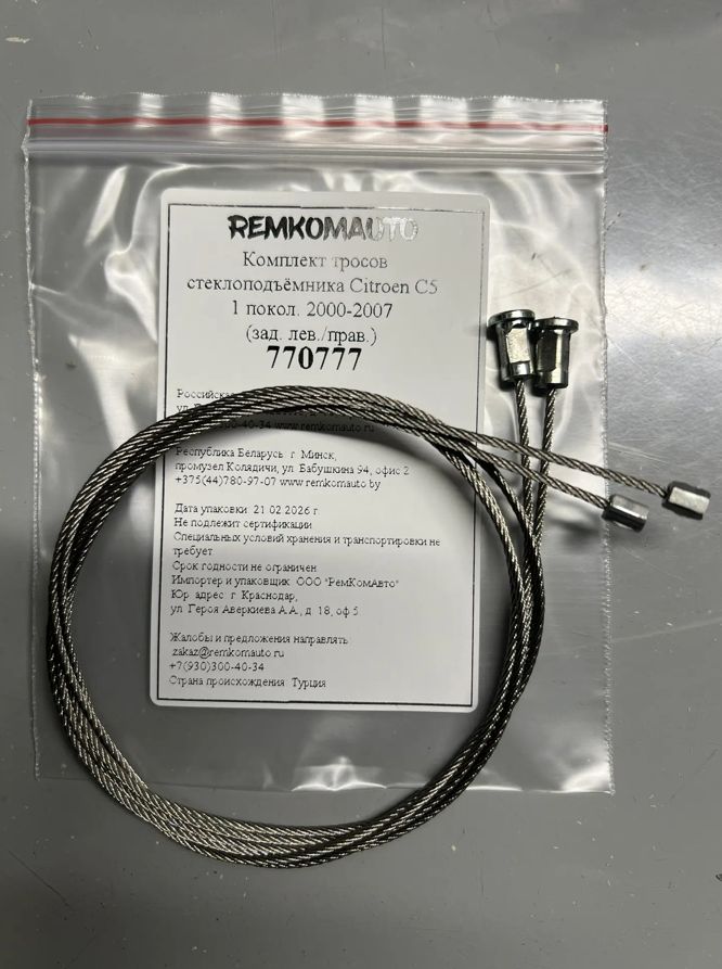 Комплект тросов стеклоподъёмника Citroen C5 1 покол. 2000-2007 (зад. лев./прав.) 770777