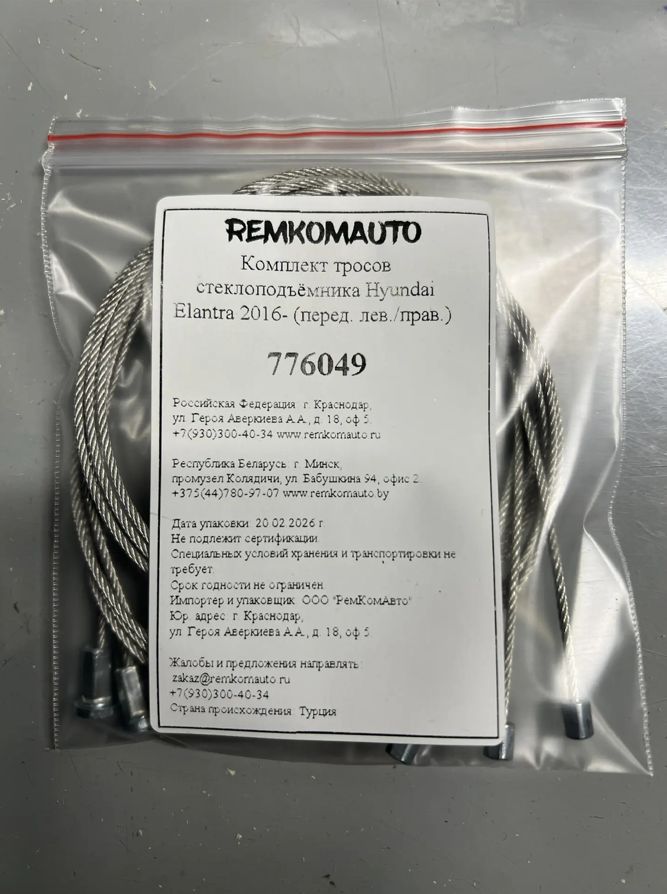 Комплект тросов стеклоподъёмника Hyundai Elantra (перед. лев./прав.) 776049
