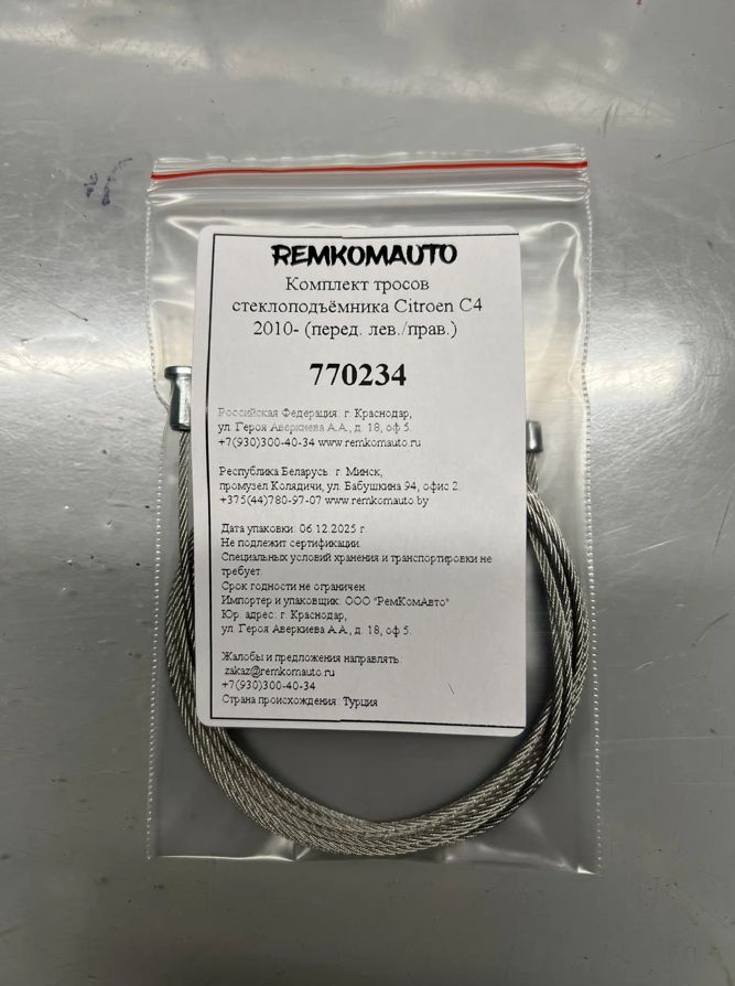 Комплект тросов стеклоподъёмника Citroen C4 B7 2 пок. 2010- хэтчбек 5 дв. (перед. лев./прав.) 770234